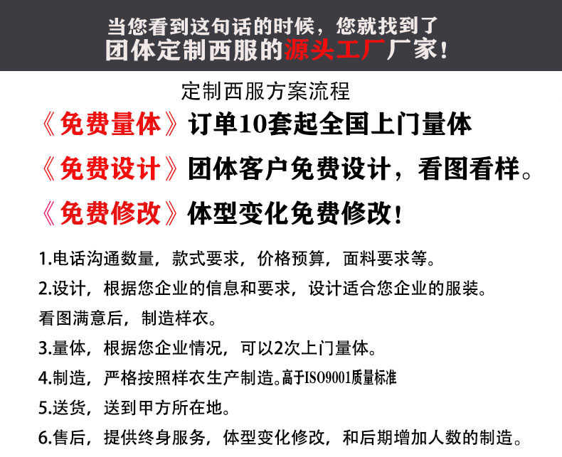 免費提供設(shè)計款式、打樣、量體、上門服務(wù)